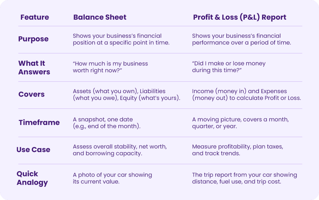 Balance sheet or Profit & Loss report? Here’s the plain-English guide, real examples, and the easiest way to get them done.