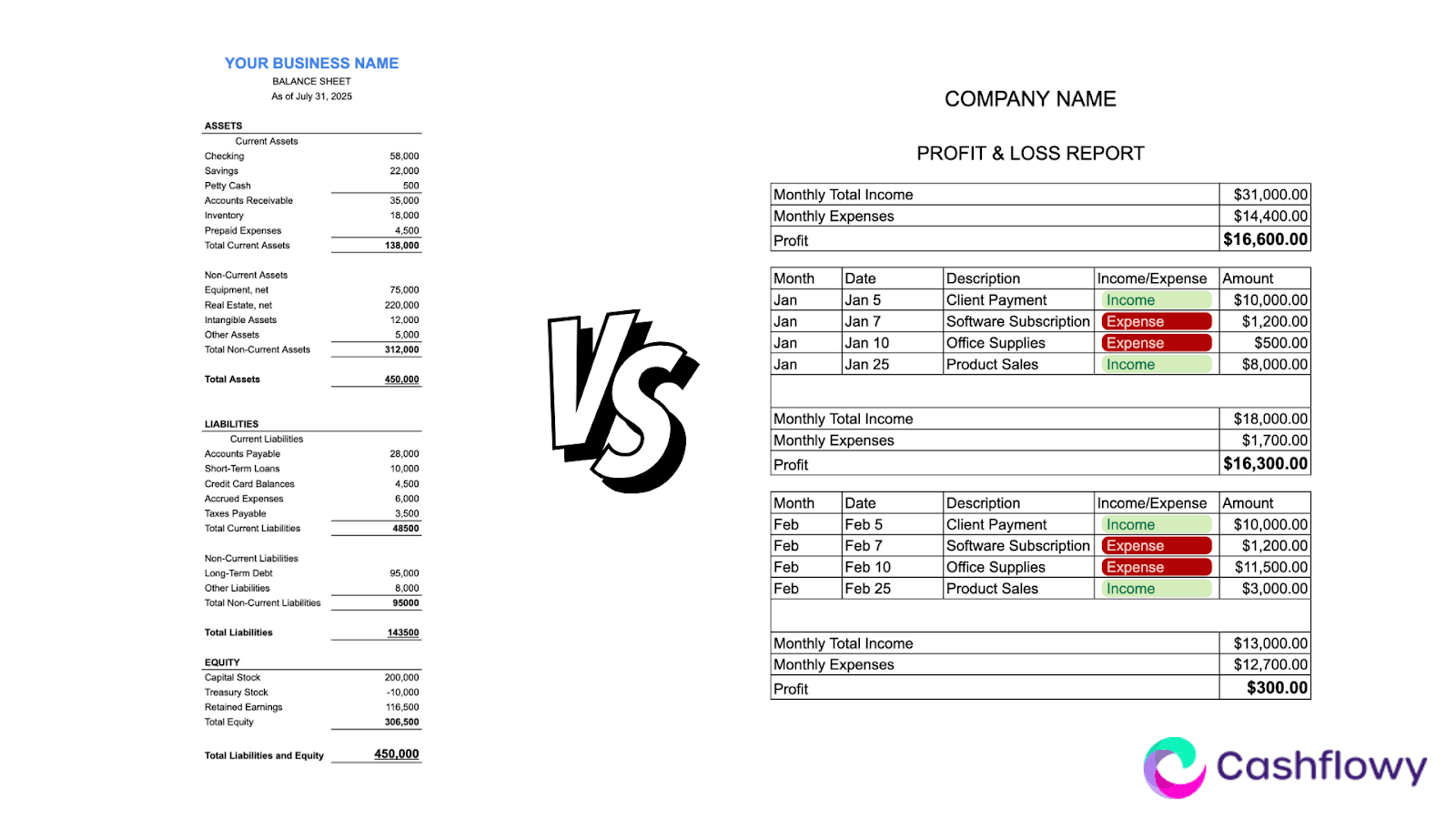 Q: Is a balance sheet the same as a P&L report?