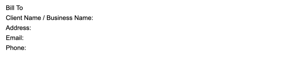 Your client’s details – Legal business name or personal name, address, contact info.