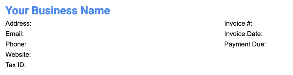 Top left: Your business name in bold.